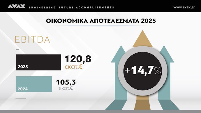 • Αύξηση EBITDA κατά 14,7%, στα 120,8 εκατ. ευρώ, έναντι 105,3 εκατ. ευρώ το 2024